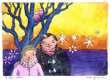 The Christmas cards are finished, so I´m back to drawing in my sketchbook. I´m actually starting to itch for some of my ordinary drawing habits, i.e. not drawing from my imagination so much, but I´m going to stick to this for December. I feel that it´s doing me good, not depicting stuff but actually making it up instead. It´s way out of my comfort zone, and I think that´s good.
