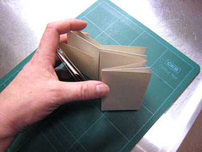 You´ll note that almost the whole book is accordion style folded, except for two pages that are open in the front end. I guess you could put some glue here, but I never do. If you glue, you will not be able to unfold the book completely afterwards.